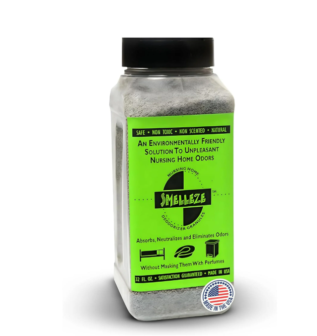 SMELLEZE Natural Elderly Odor Remover Deodorizer granules offer a breath of fresh air, effectively eliminating a range of odors including chemical, urine, fecal, and more in nursing homes. Its unique ability to absorb, neutralize, and encapsulate offensive smells ensures a healthier, odor-free environment for patients and staff alike.